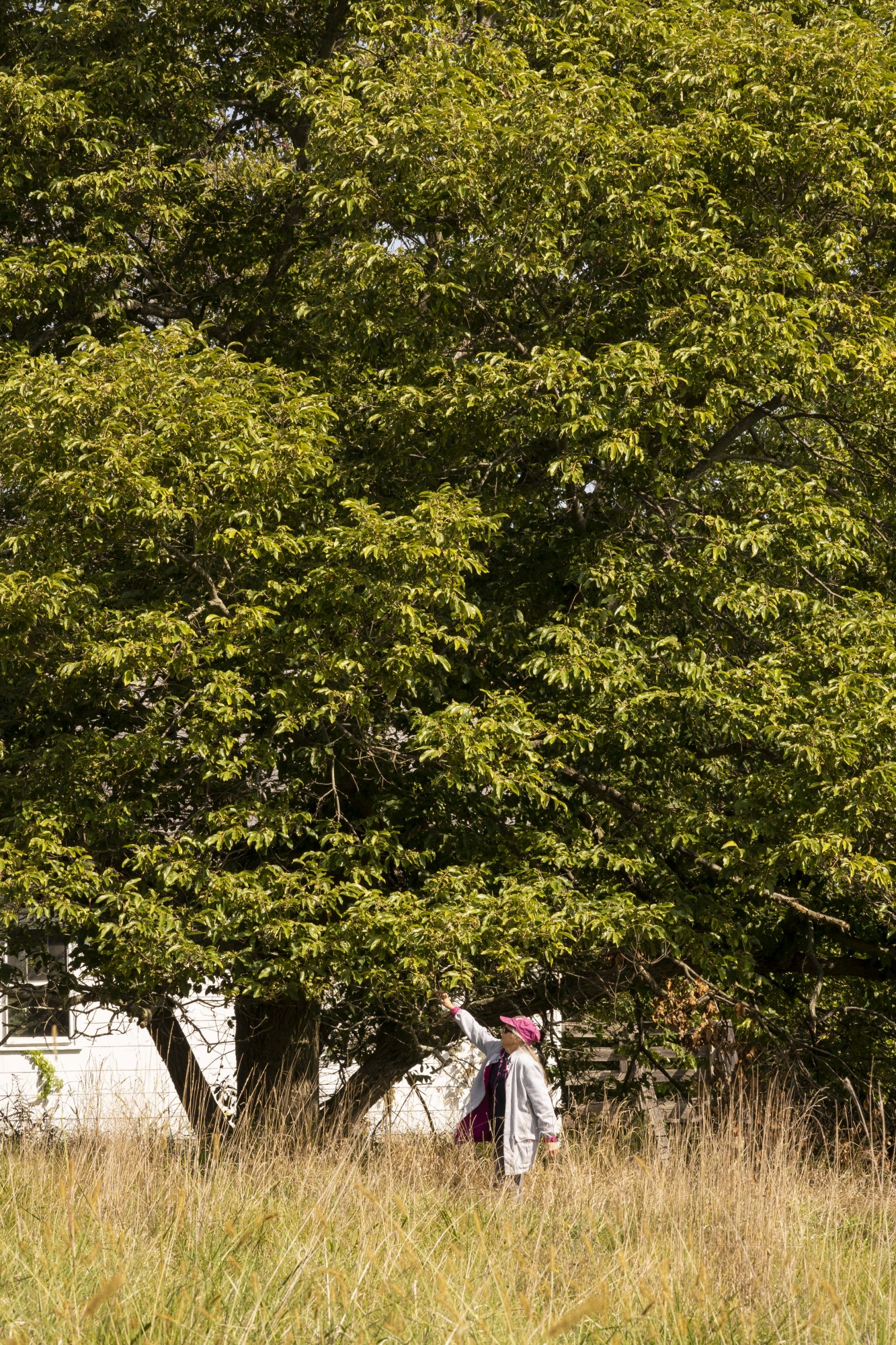 “My dad, who grew up across the road, was good friends with the people who lived here,” Wilson said. “They had five boys that worked on the farm here before going to war. They would cut down dead trees in the forest behind this house like crazy. One day, they came back with a little sapling and planted it here by the house on their sister’s birthday. She’s been gone for a little while now. She would have been over 100, so this tree has been here a long time. It has little tiny acorns. There seems to be a squirrel that lives in it year-round. It really provides a lot of shade for the house in the hot months. When we’ve had ice storms, the limbs, even though they’re way up high, touch the ground. I was sure it was going to ruin the tree, but it didn’t. We started doing limb maintenance on the tree about three years ago, in hopes of giving it a little more life.”