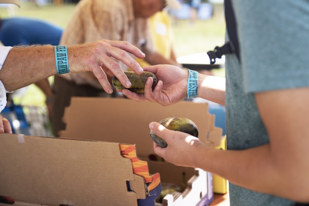 Festival attendee buys fresh Paw Paws at the 20th anniversary of the Paw Paw Festival on September 15 2018.